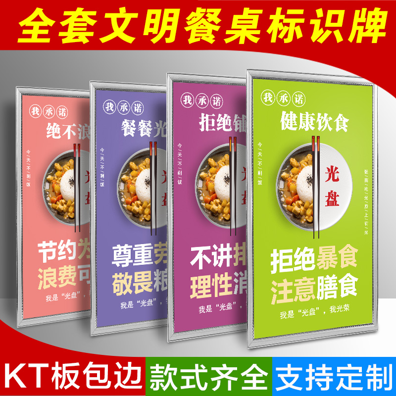 文明餐桌提示牌 光盘行动宣传标语 食堂饭店厉行节约杜绝浪费海报挂图墙贴画餐厅节约珍惜粮食拒绝浪费标识牌