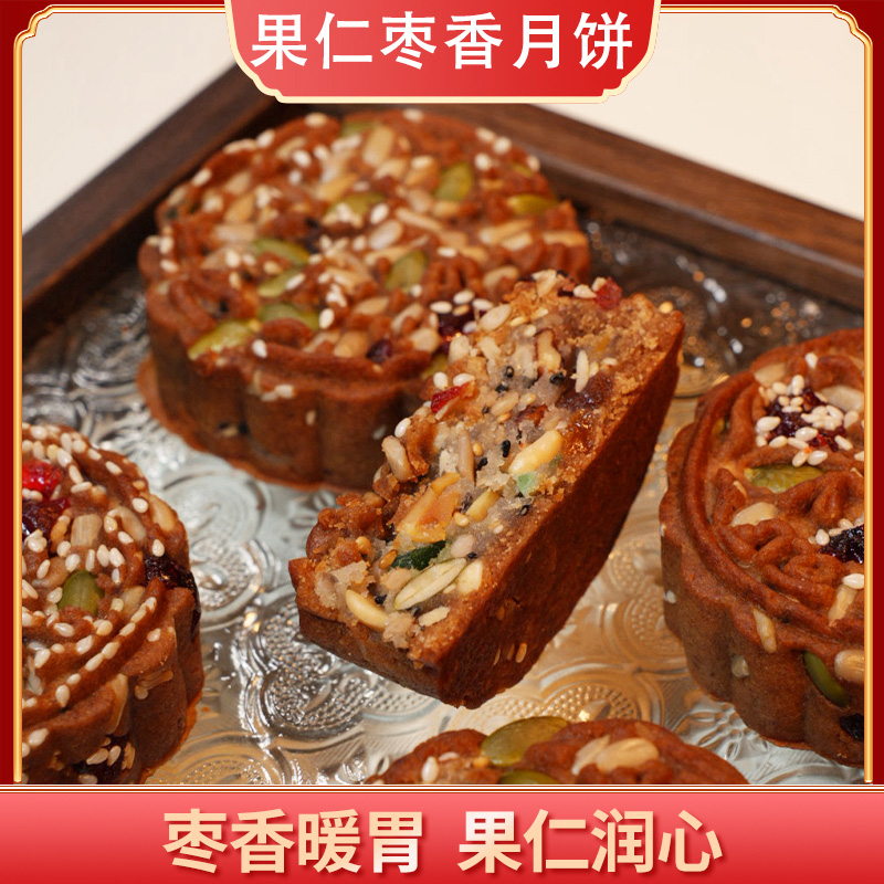 特产果仁枣香月饼大红枣月饼老式五仁月饼中秋佳节健康糕点