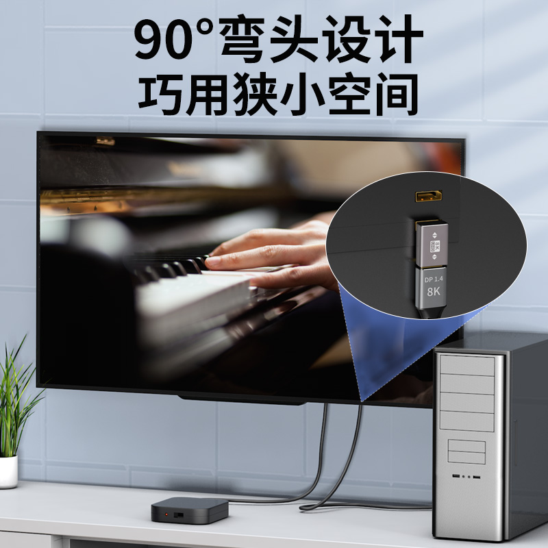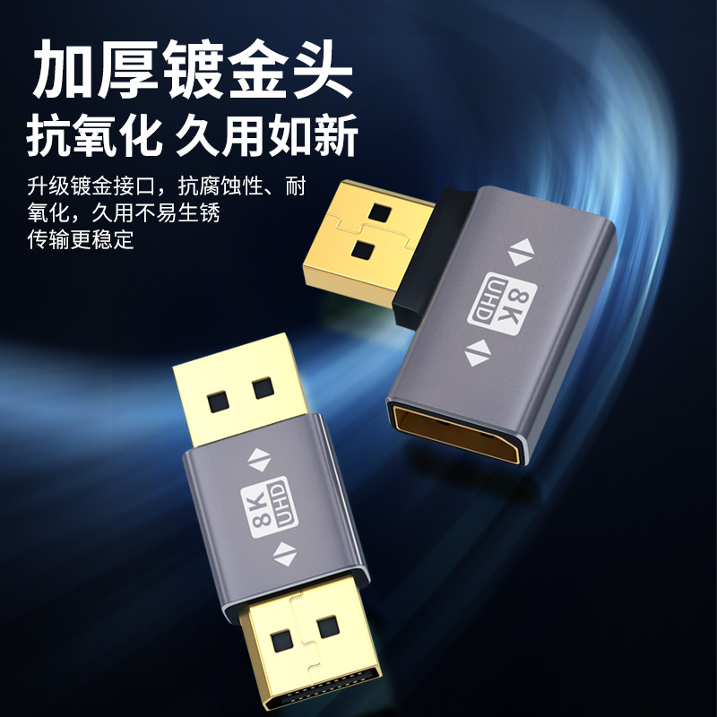 腾飞标准DP公对1.4版8K转接头90度直角上下左右弯头母对母延长线电脑显卡显示器转换器4K144hz高清转向头接口
