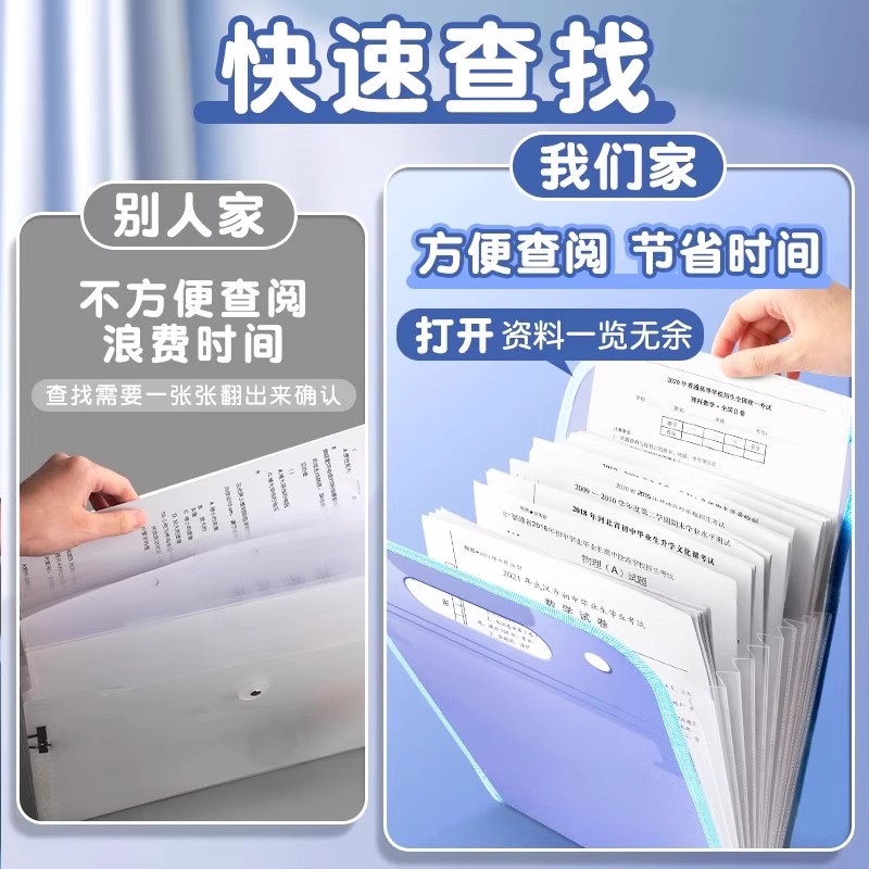 全新款a4手提风琴包文件夹试卷袋学生多层大容量收纳袋科目分类手拎式专用卷子书包开学竖式防水考试A4纸资料