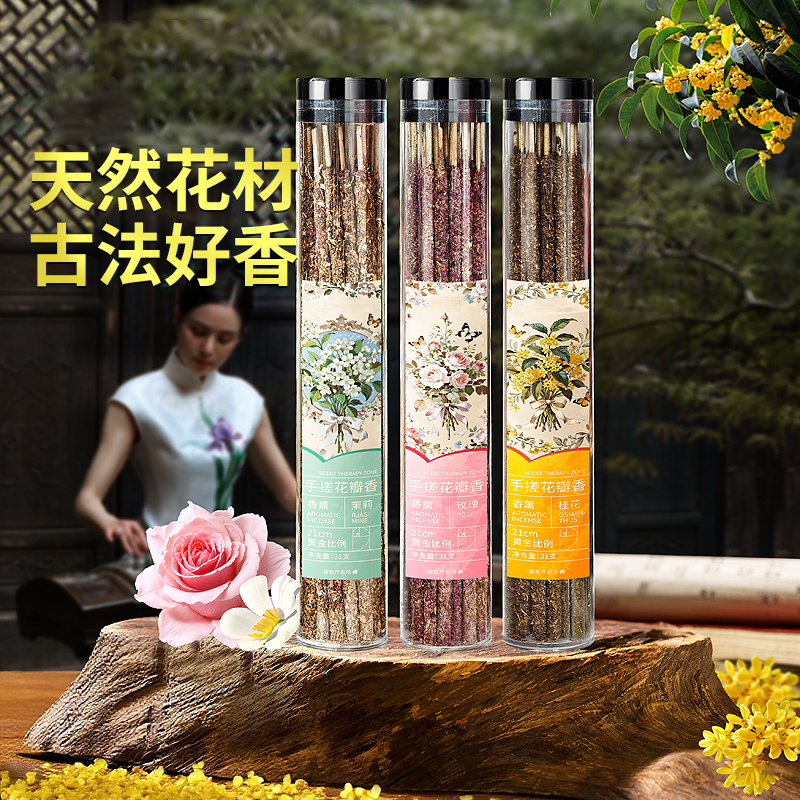桂花线香手搓薰室内持久家用高级玫瑰花瓣香安神助眠带底座竹签香