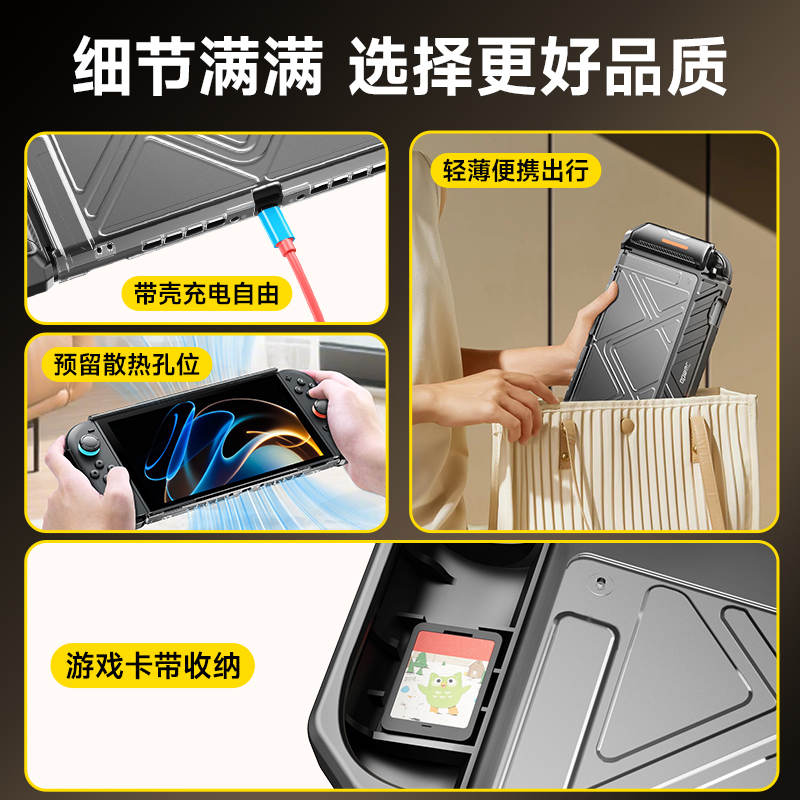 Jemdo锦读适用任天堂switch2保护套ns2代一体式壳可折叠手柄握把防滑全包透明硬壳游戏卡带收纳盒包掌机配件