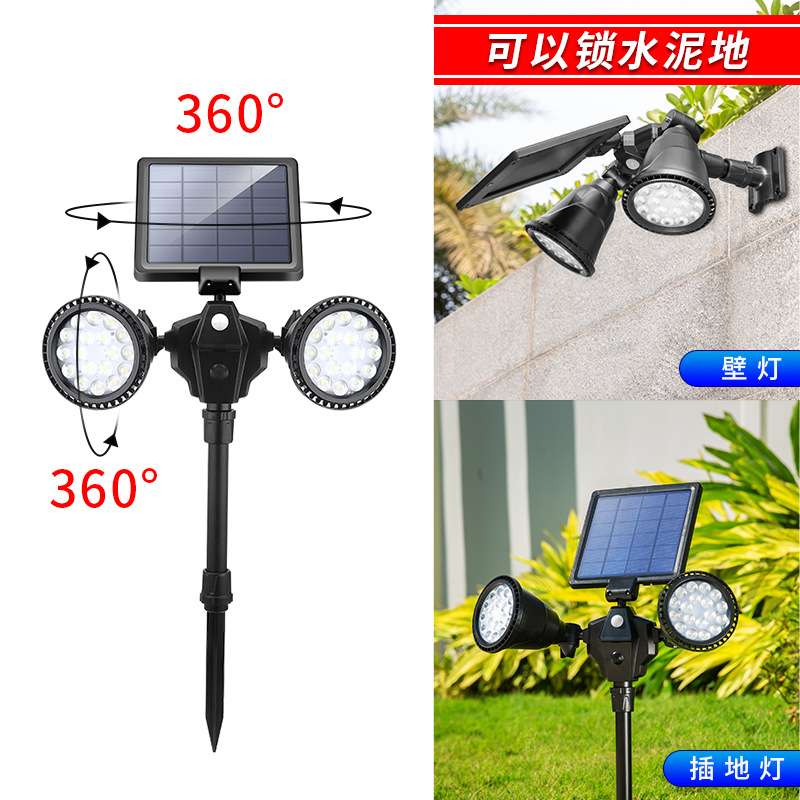 亚马逊热卖太阳能射灯 户外庭院景观双头地插射树人体感应草坪灯