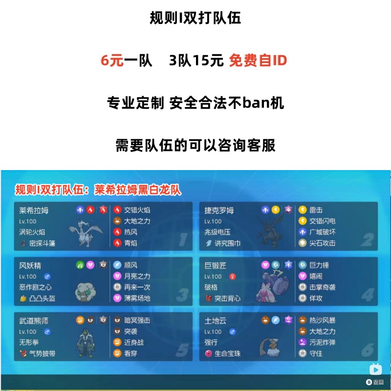 switch宝可梦朱紫规则I双打队伍莱希拉姆黑白龙队 6元一队