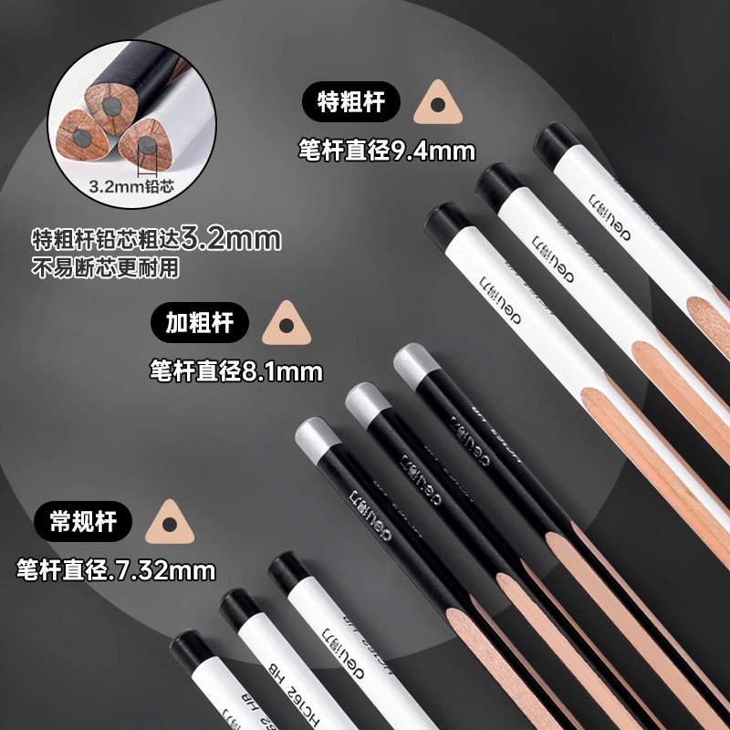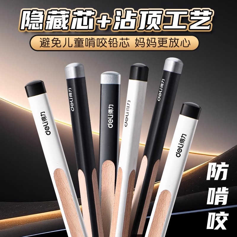 得力铅笔小学生无毒一年级二年级2b学生考试专用涂卡笔答题卡儿童铅笔自带橡皮擦绘图素描幼儿园hb三角杆