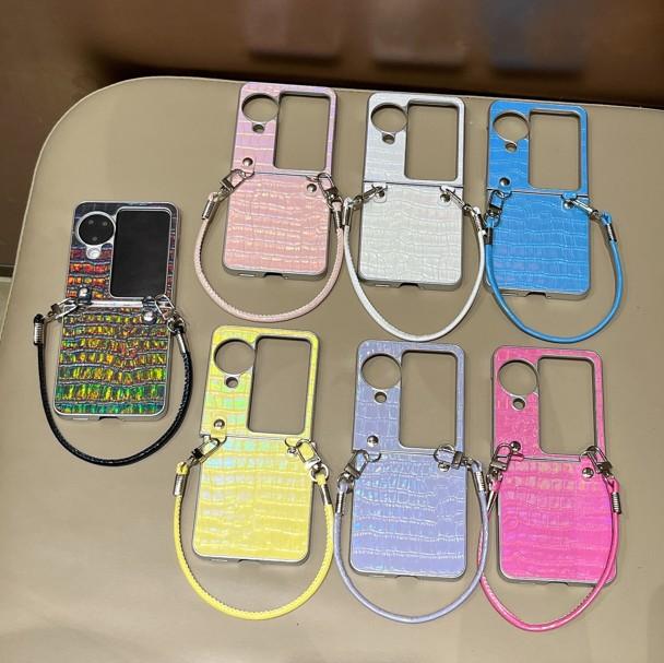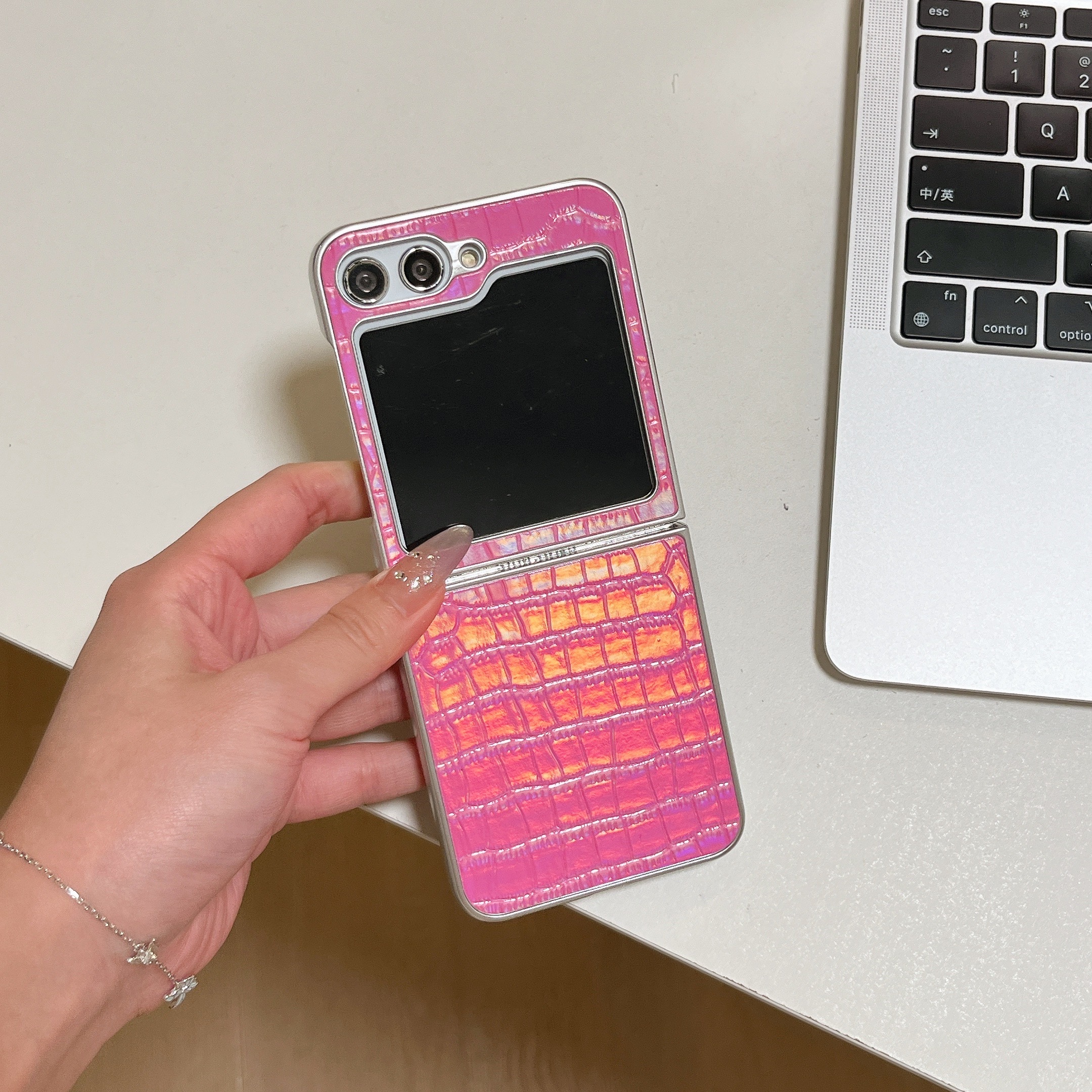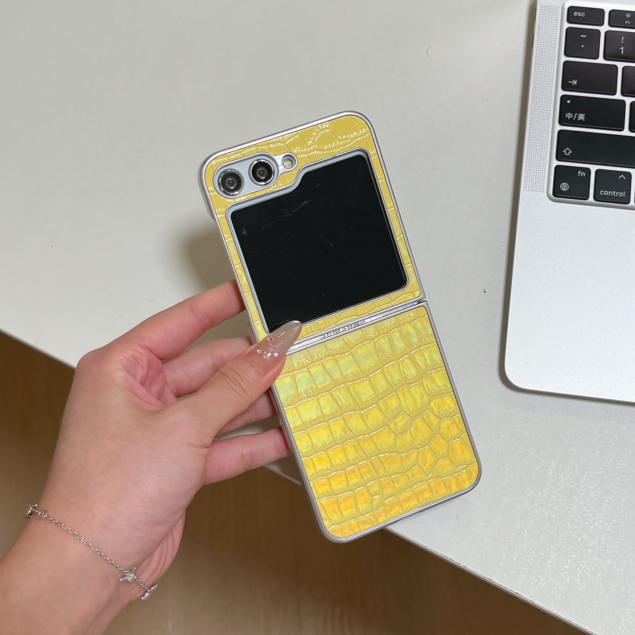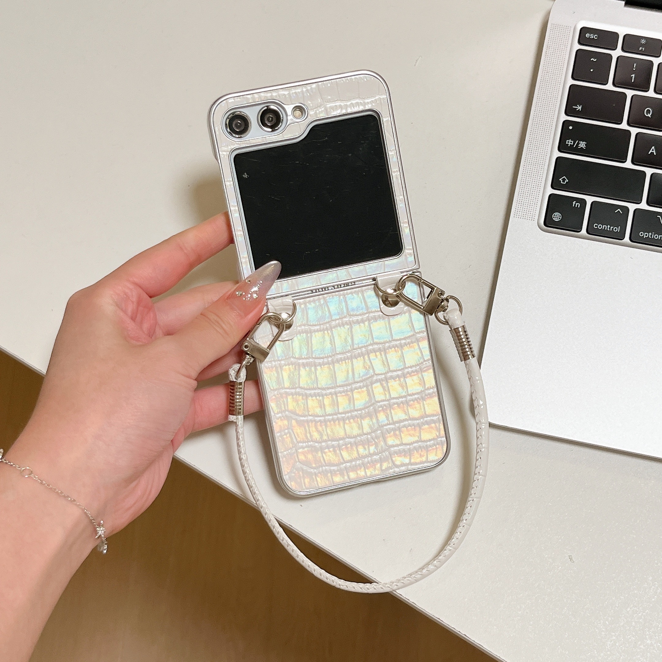 奢华银边荧光鳄鱼皮适用于三星Galaxy zflip6/5/4手机壳三星Z Fold3时尚 折叠式三星Galaxy W25带挂绳保护套