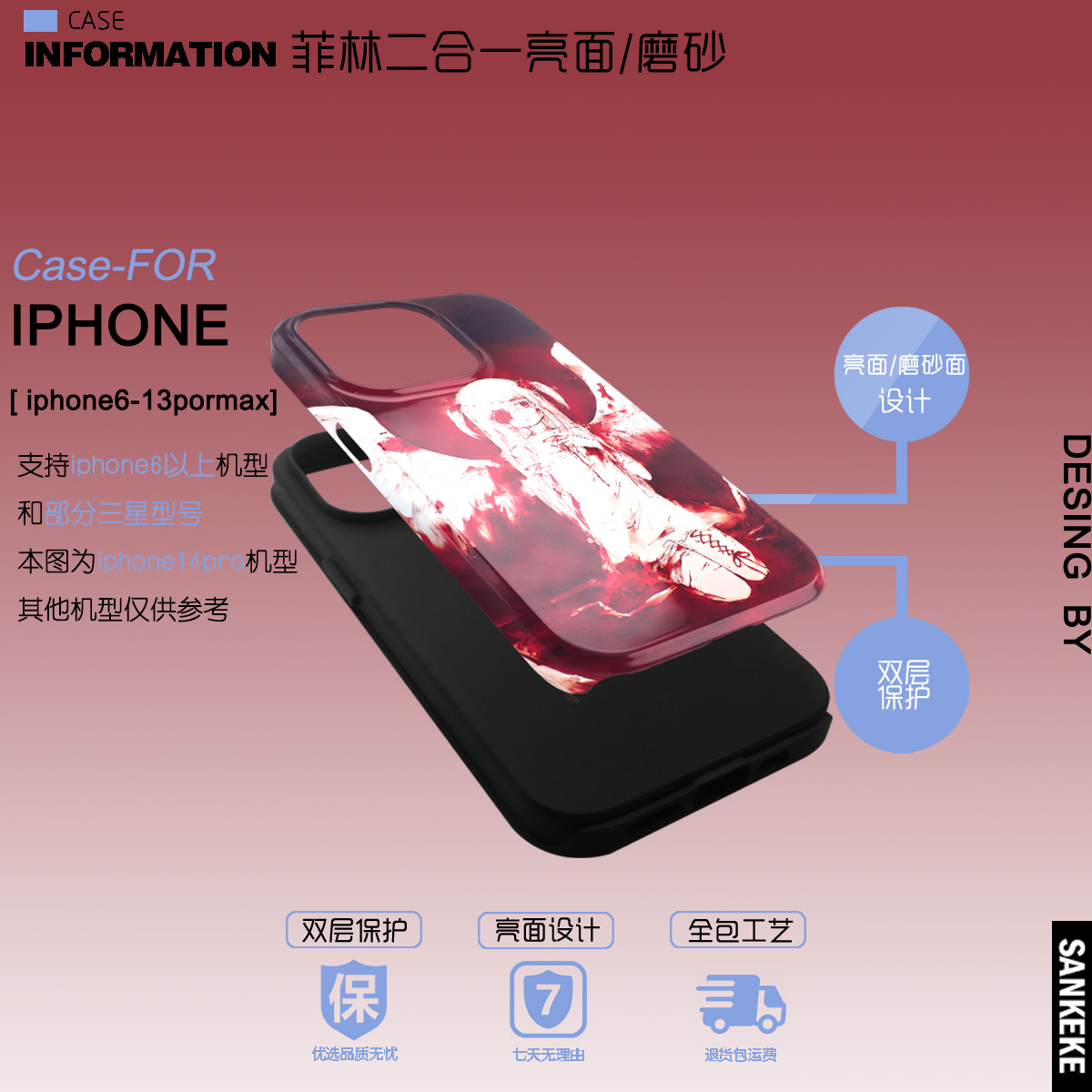 三壳壳原创个性血色天使少女插画用于苹果16promax/15/14/13/12/11防摔菲林二合一全包边亮面磨砂手机保护壳