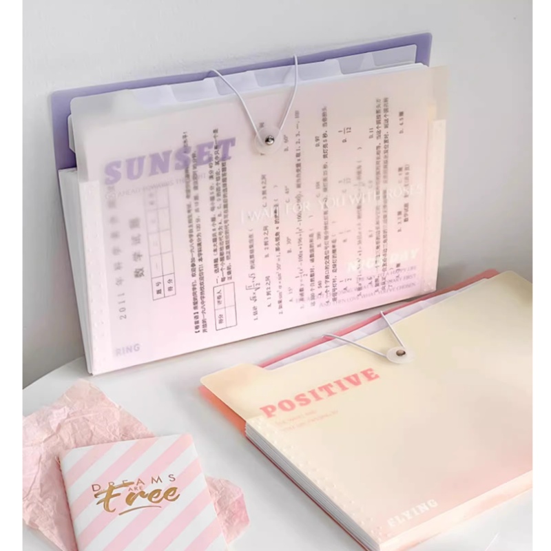 文谷渐变色8入文件夹风琴夹学生试卷多层收纳袋a4大容量文件收纳册