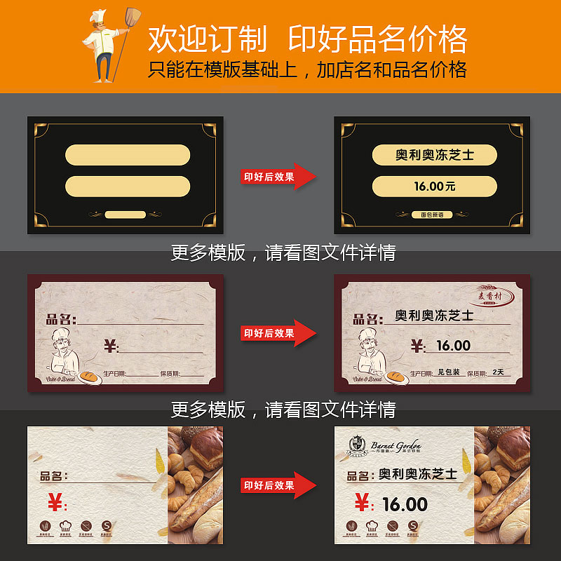 面包店价格牌 蛋类标签牌 烘焙标签卡标价卡价钱牌价格标签EPOP广