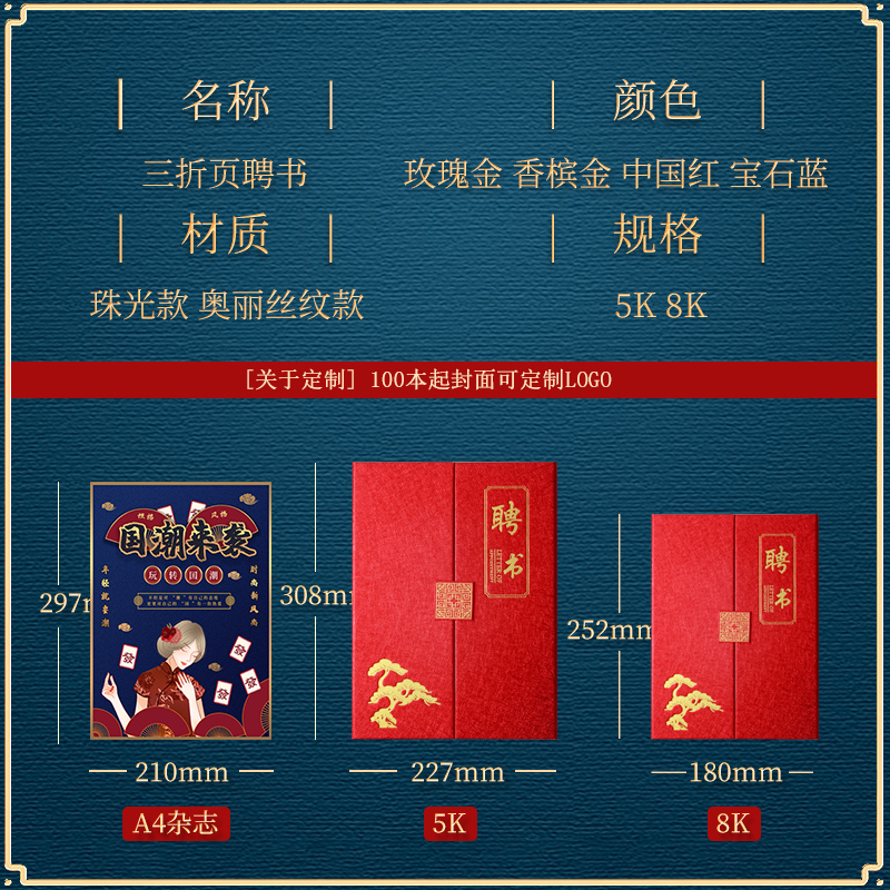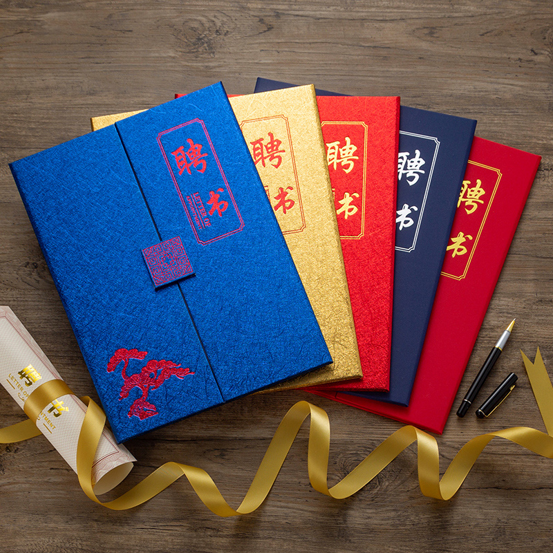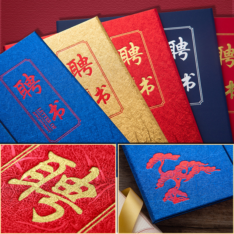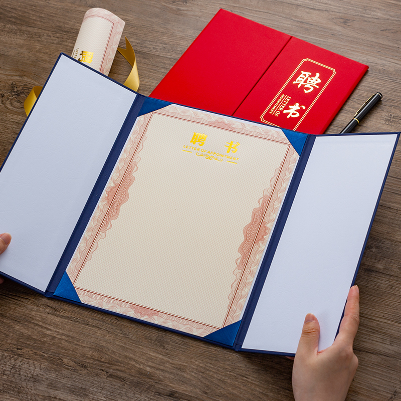 高级感三折聘书外壳定制学生会班干部家委会证书内页内芯纸送模版
