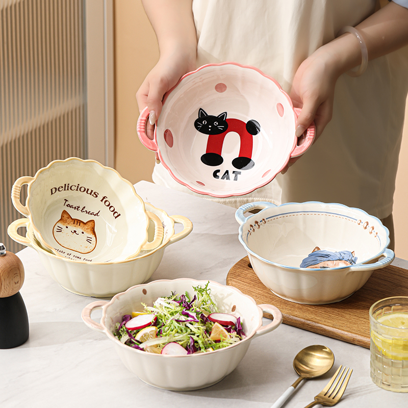 釉下彩卡通双耳陶瓷碗2024新款可爱泡面碗个人专用家用汤碗餐具碗