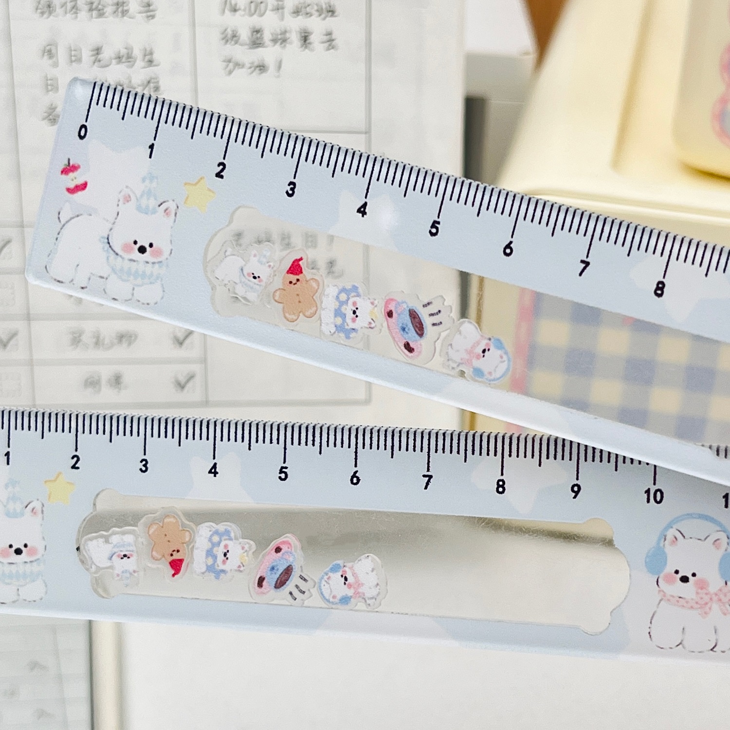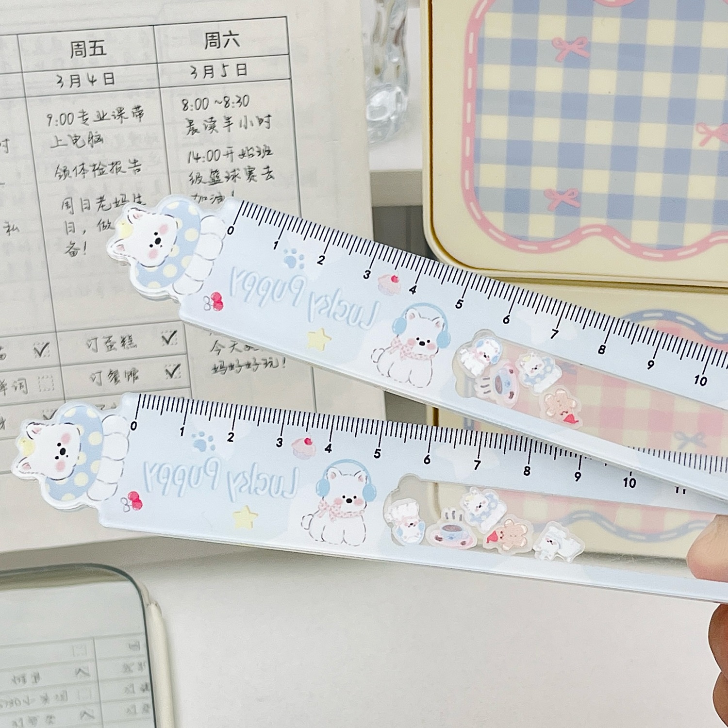 新款卡通线条小狗摇摇乐尺子可爱学生直尺15cm厘米亚克力加厚款
