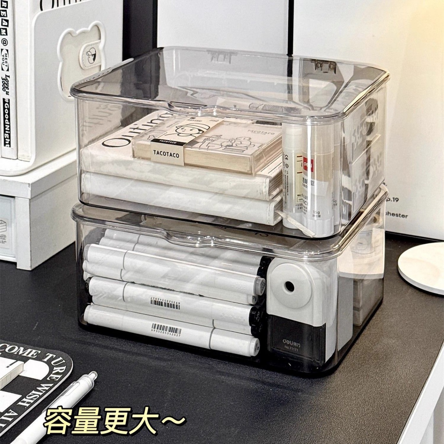 高透亚克力桌面收纳盒翻盖式防尘整理盒卧室宿舍办公室带盖收纳筐