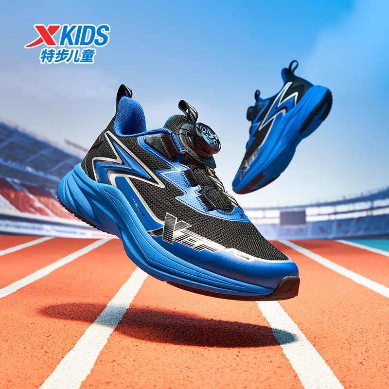 特步童鞋春秋新款儿童运动鞋男童防滑减震缓震中大童旋转纽扣跑鞋