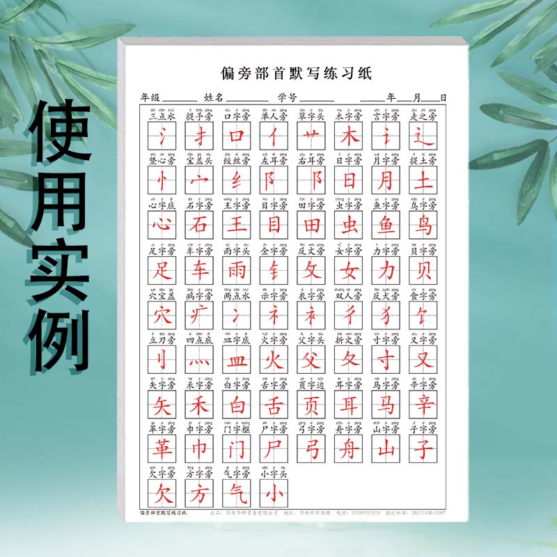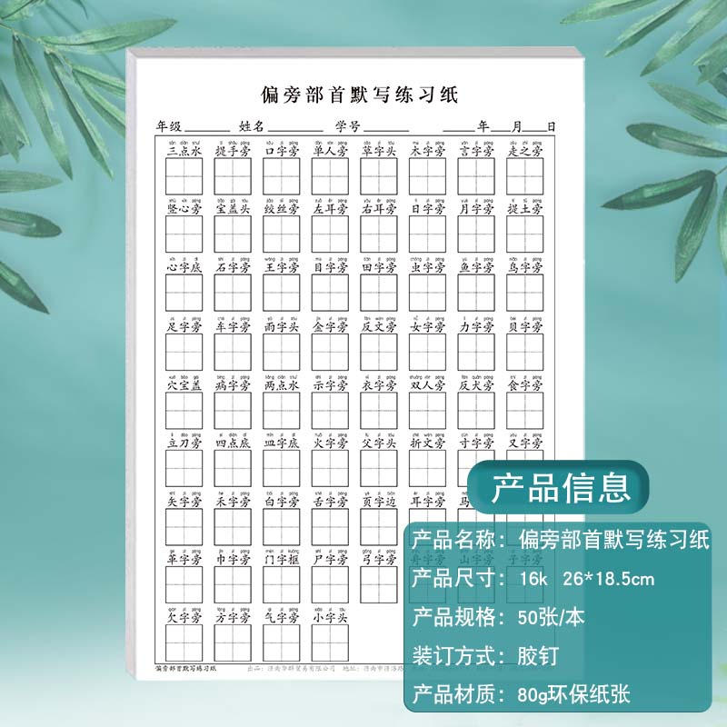 小学语文生字偏旁部首默写练习纸一年级每日一练识字专项练习单人旁竖心旁宝盖头反犬旁等常见偏旁部首默写纸