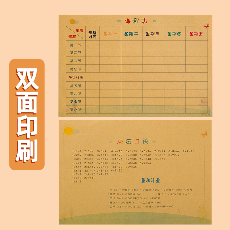 牛皮课程表一年级小学生用便携课程表硬卡片贴小号墙贴纸儿童假期安排上课时间表格初中生学习自律表桌面摆件