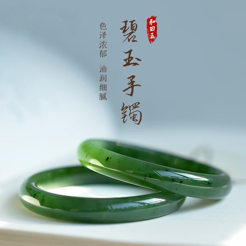 正品新疆碧玉手镯女款真玉石镯子老婆节生日妈妈礼物和田玉菠菜绿