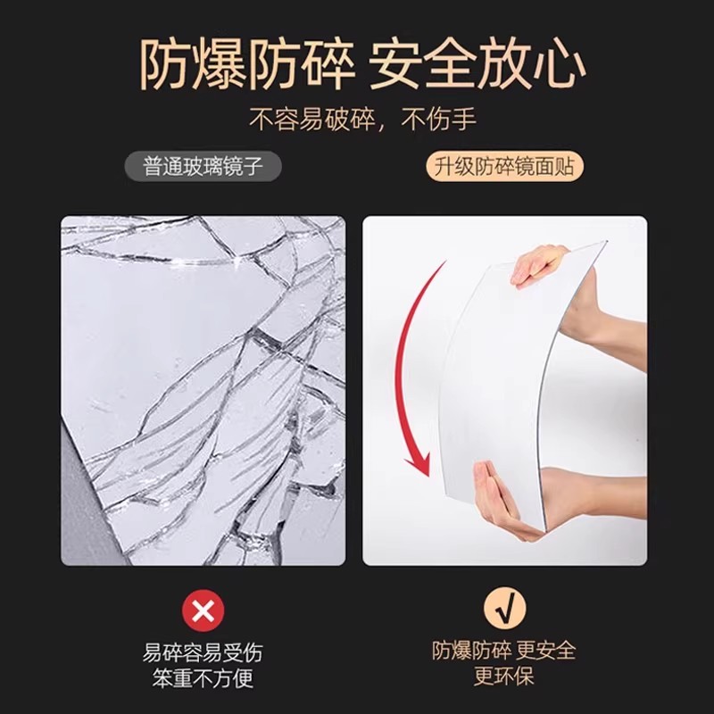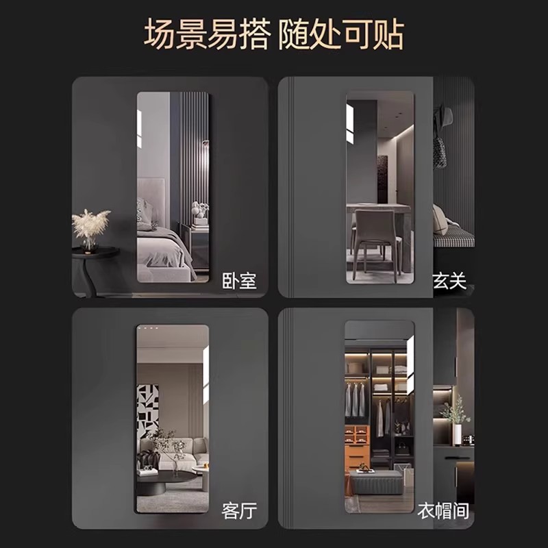 软镜子贴墙自粘全身镜穿衣镜亚克力家用高清乳胶漆墙免打孔试衣镜