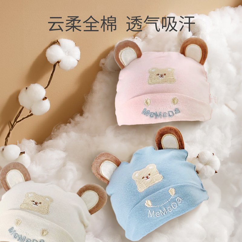 十月结晶粒粒阳光婴儿帽子a类0到3个月新生小月龄宝宝护卤门胎帽