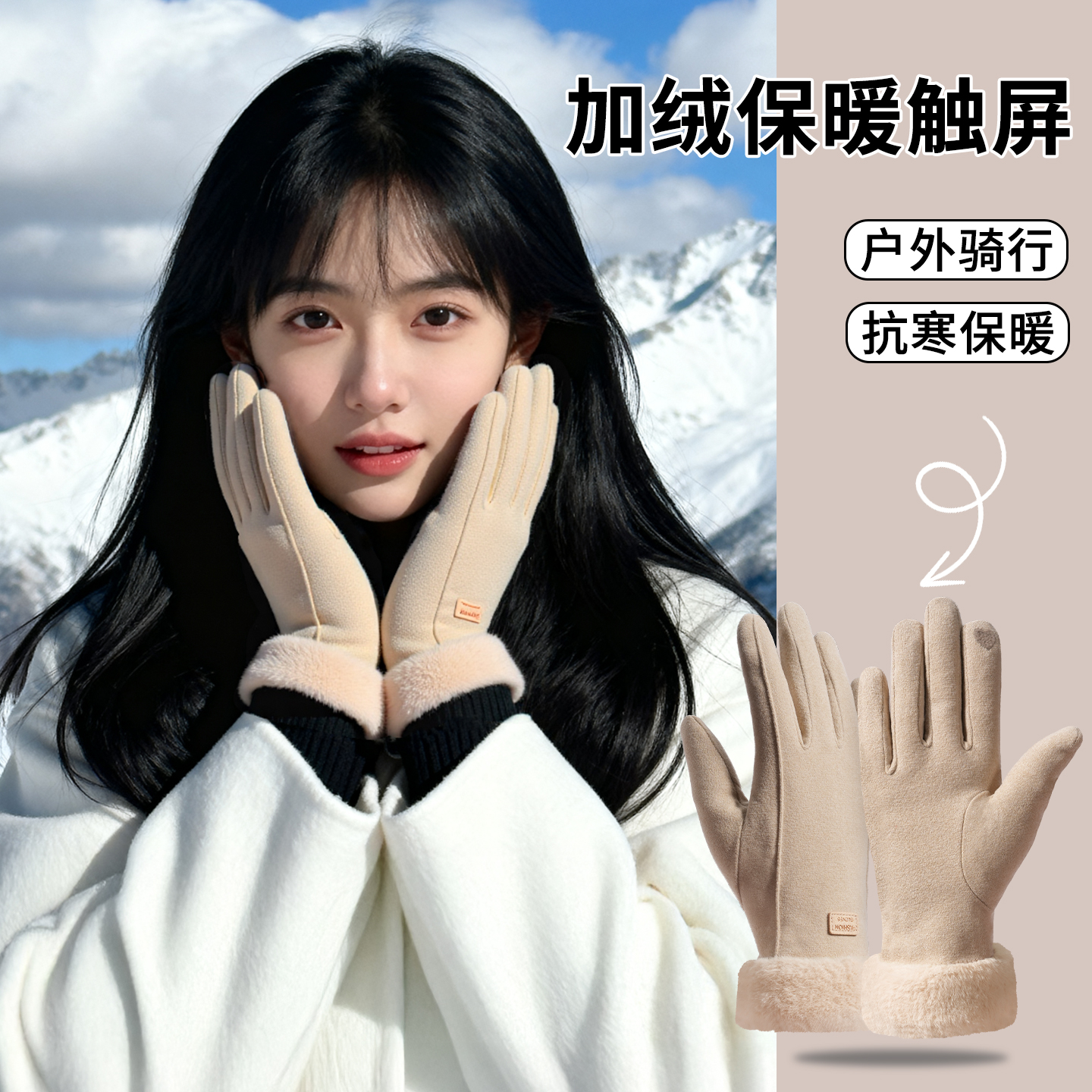 手套秋冬天女加绒保暖可爱德绒女士骑行防寒骑车防风触屏