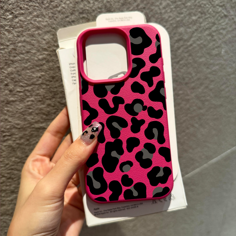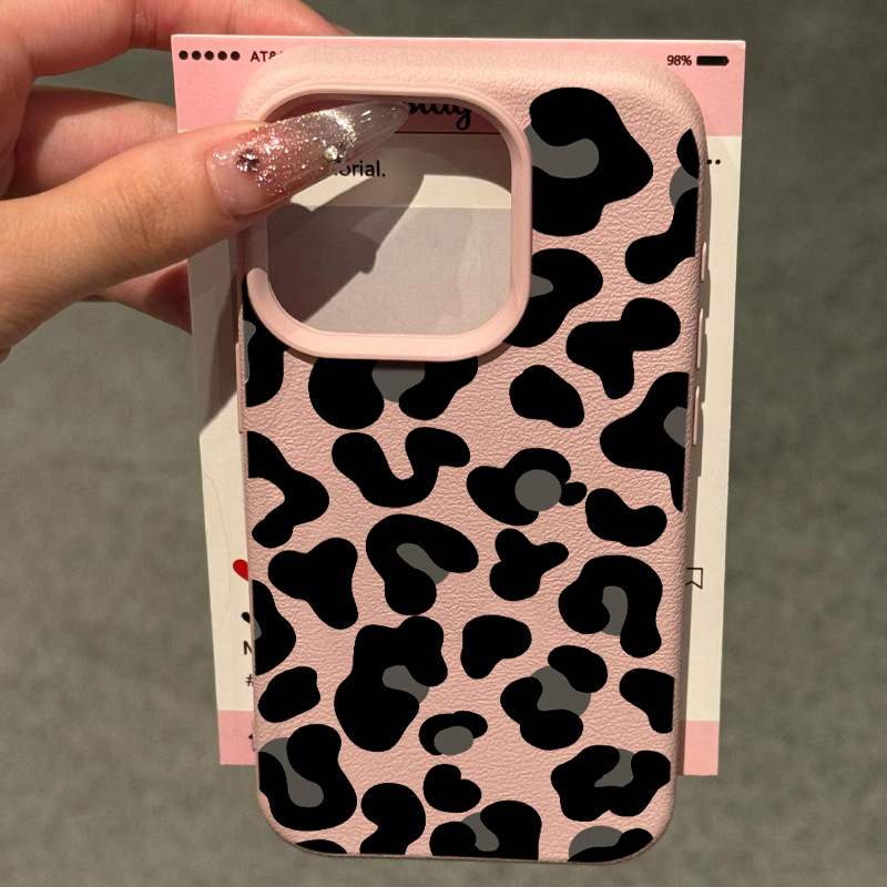 ins甜酷黑色豹纹适用苹果16promax手机壳iPhone14女新款13皮质12时尚个性11小众荔枝纹15Pro防摔14pro保护套