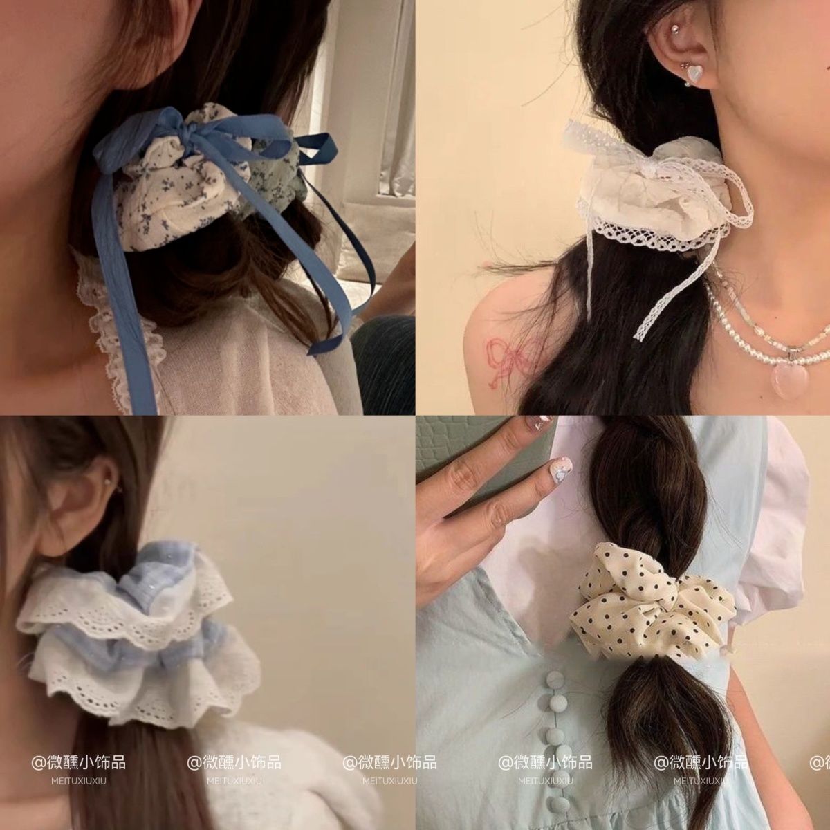 发圈韩系洛丽塔蝴蝶结仙甜大肠蕾丝泡泡纱高级发绳飘带马尾头绳子