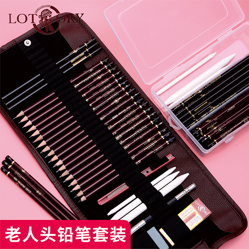 老人头铅笔套装素描笔软中硬炭笔绘画工具素描铅笔2b4b全套用品组合2h4h初学者速写14b美术生专用2比素描铅笔