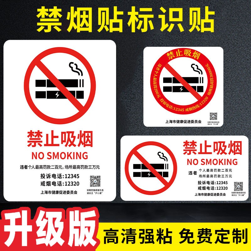 上海新版禁烟贴标识贴请勿吸烟室内严禁抽烟墙贴指示牌子亚克力贴纸禁止吸烟提示牌禁烟标志戒烟控烟公共场所
