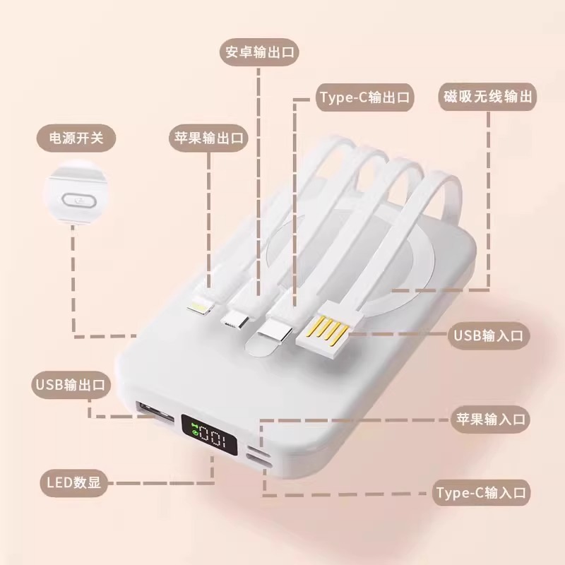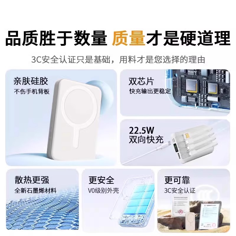 磁吸充电宝20000毫安超大容量自带线快充超薄小巧便携官方正品旗舰店无线适用iphone17华为苹菓8手机专用小mi