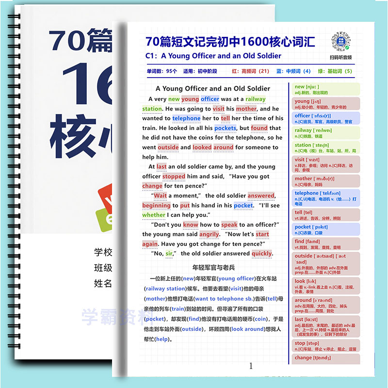 初中英语70篇短文同步1600核心词汇小学高中40篇童话故事核心词汇