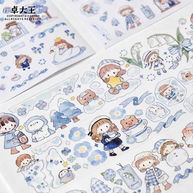 【卓大王】新款全套色调系列和纸胶带调调卡通少女手账画贴纸分装