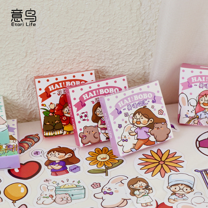 意鸟 BOBO系列盒装贴纸 可爱人物系列手账相册物品装饰封口贴 6款