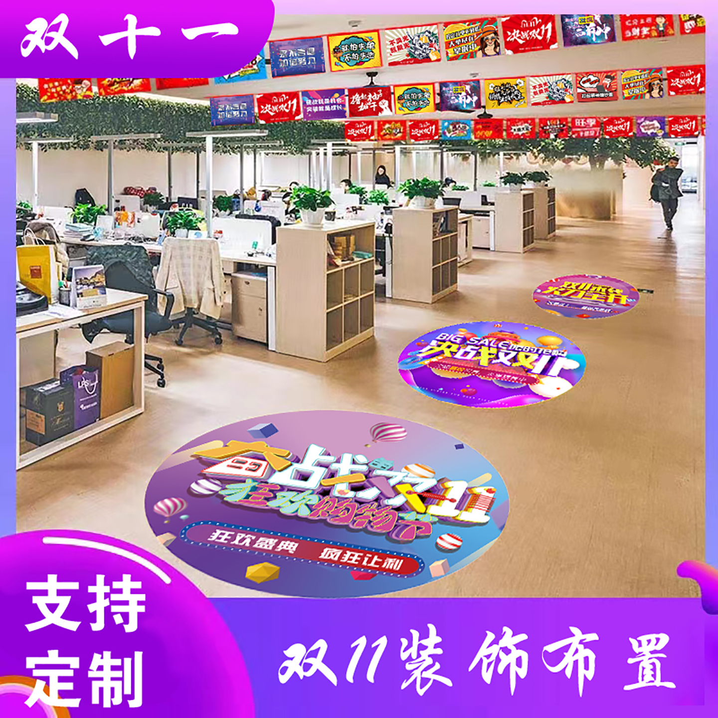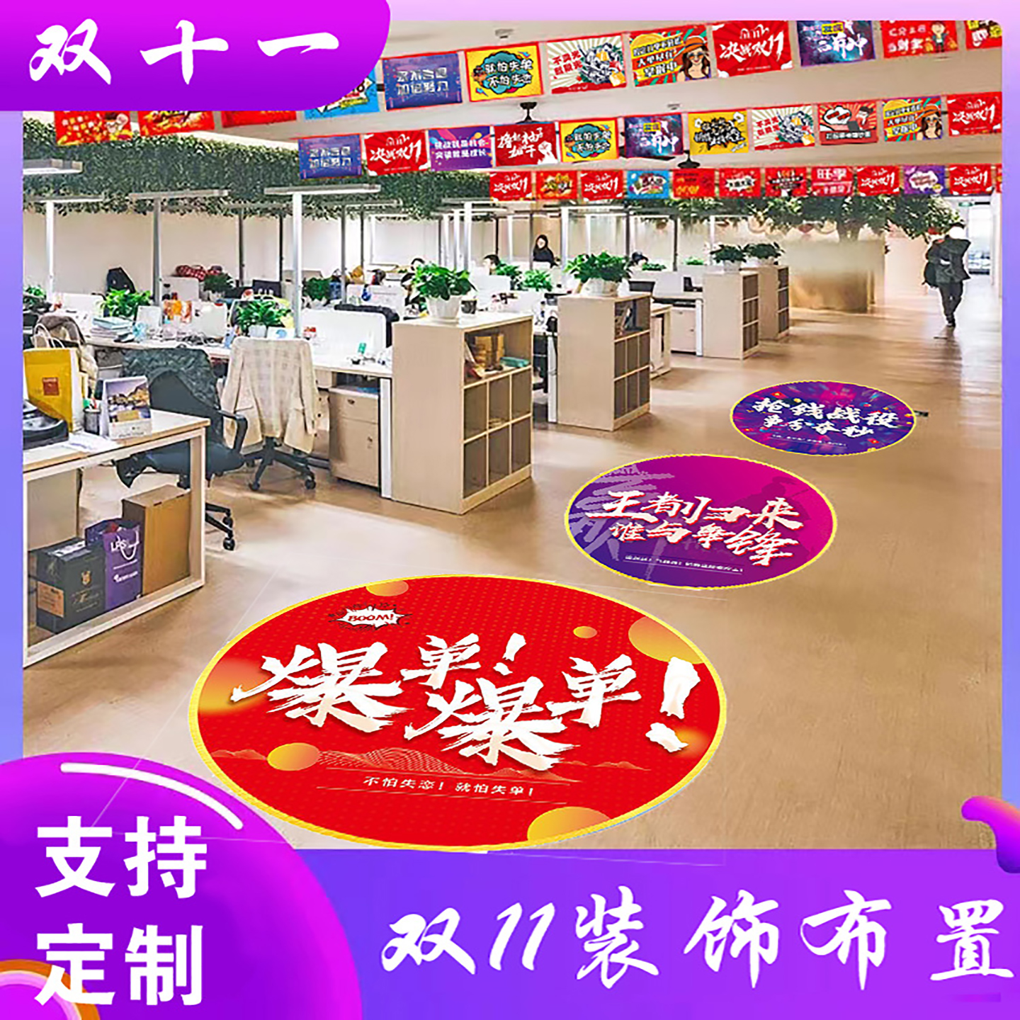 双十一地贴企业电商励志激励装饰贴纸玻璃贴窗贴双十一场景布置