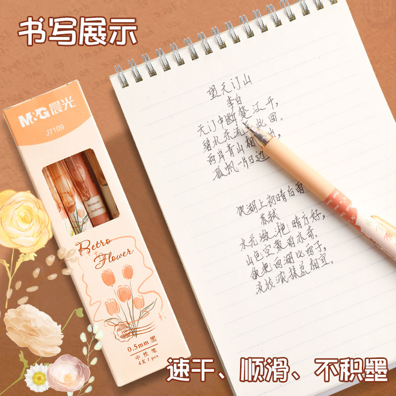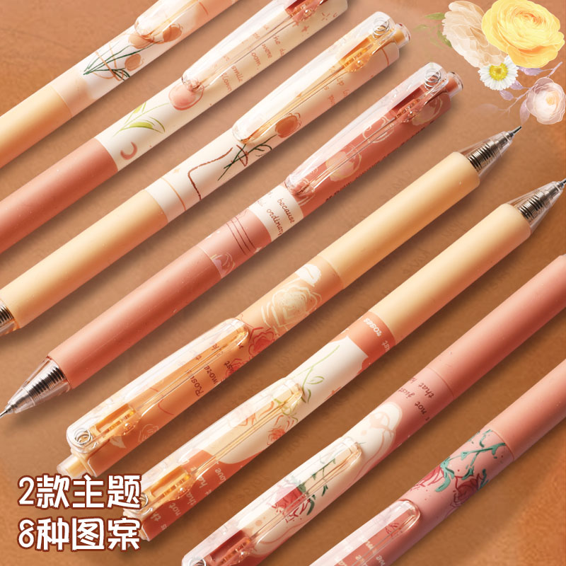 晨光按动中性笔绽放之诗玫瑰水笔黑色学生考试专用中性笔高颜值按动笔芯速干碳素笔0.5考试刷题笔芯ins签字笔