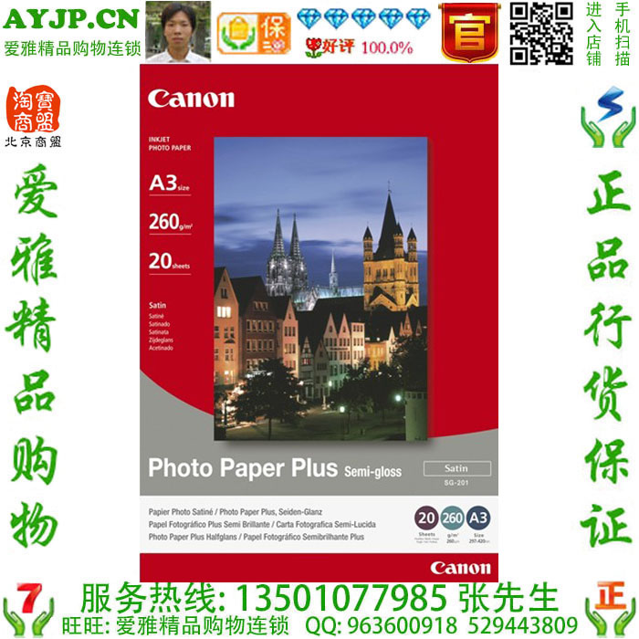 佳能 Canon SG-201 亚高光面照片纸 A3+ 20张/包 相纸 相片纸现货