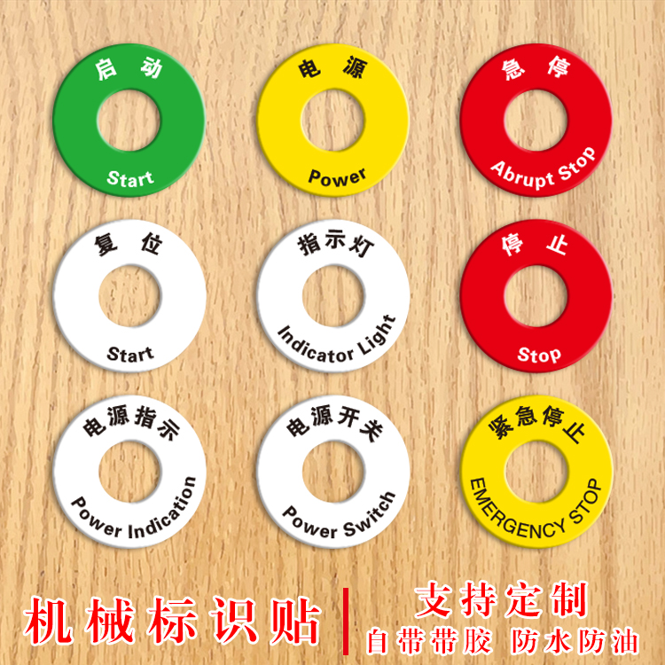 热销圆形PVC底片设备标签贴启动电源开关复位停止照明标识牌急停