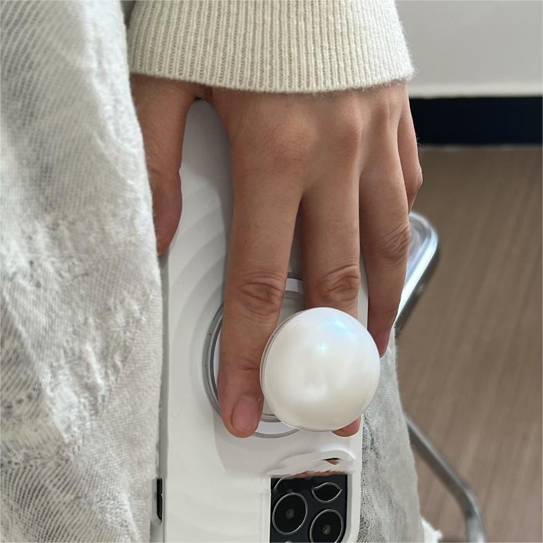 磁吸手机气囊支架小众白水晶球大珍珠闪粉可伸缩粘贴式背贴透明女
