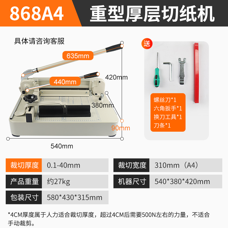 宝预868A4手动切纸机办公用的厚层重型台式裁纸刀a4幅面纸刀切400张70G纸切4CM厚度标书书籍图文装订印后配套