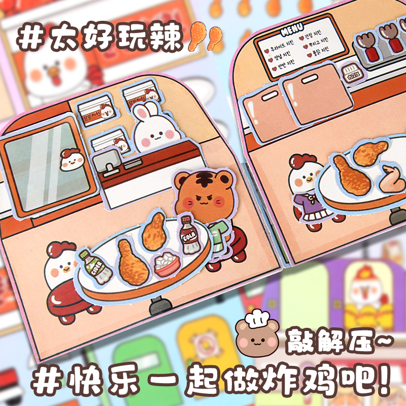 安静书免裁剪新款女孩手工diy玩具制作材料小学生儿童男孩女生面包小吃店6岁以上换装贴纸本2025高颜值豆豆本