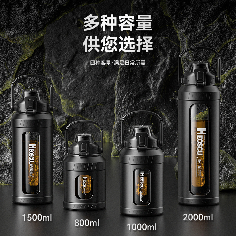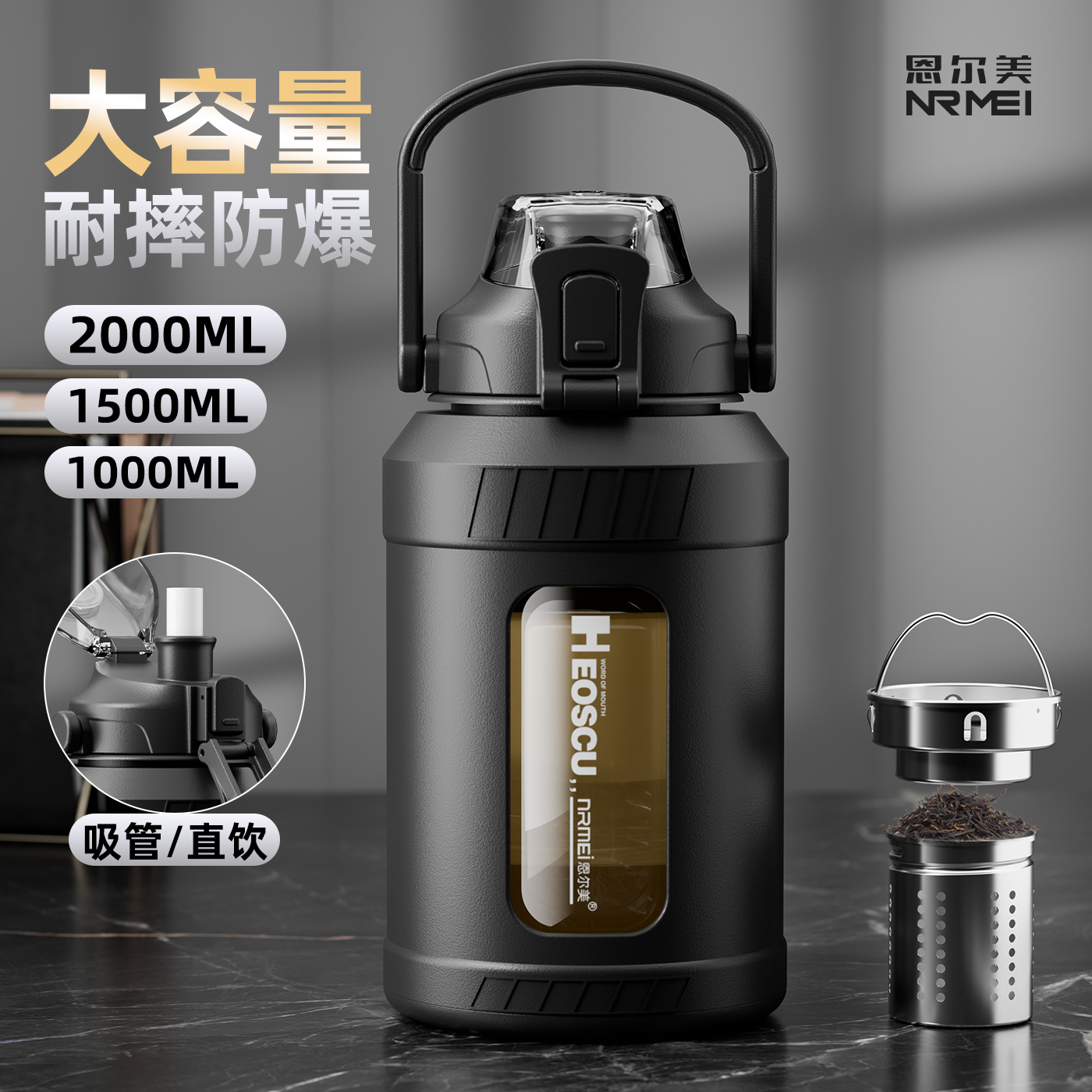 水杯大容量男生吨桶吨2000ml耐高温玻璃杯茶水分离顿顿桶运动水壶