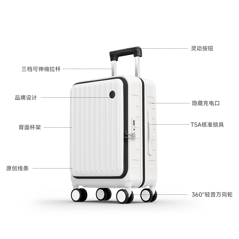 最+旅程侧开盖行李箱女20寸可扩展登机拉杆箱轻便多功能旅行箱男