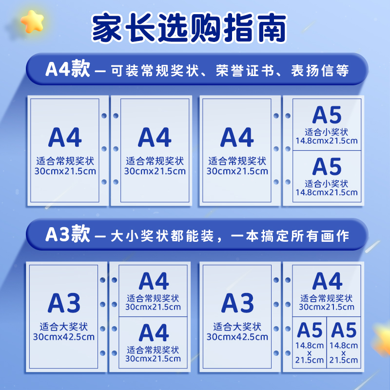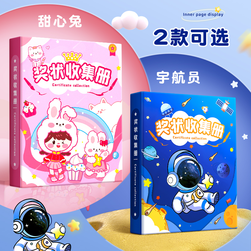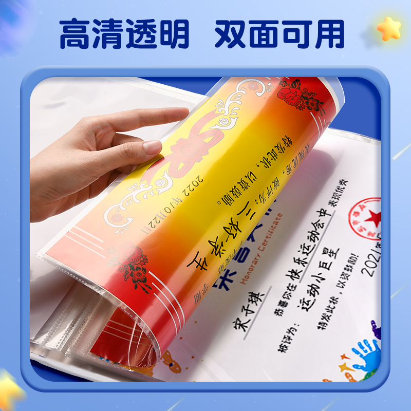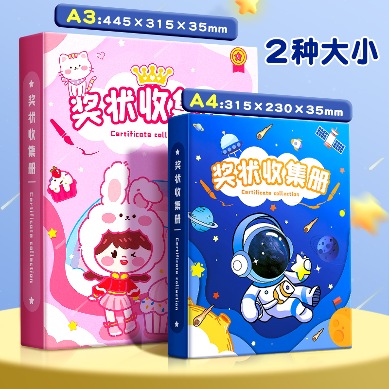 A3奖状收集册男孩女孩A4儿童画册收纳神器放装作品的册子文件夹小学生幼儿园收藏袋相册本荣誉证书可挂墙展示