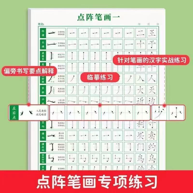 楷书控笔训练字帖点阵笔画偏旁常用字字帖硬笔书法临摹练习纸