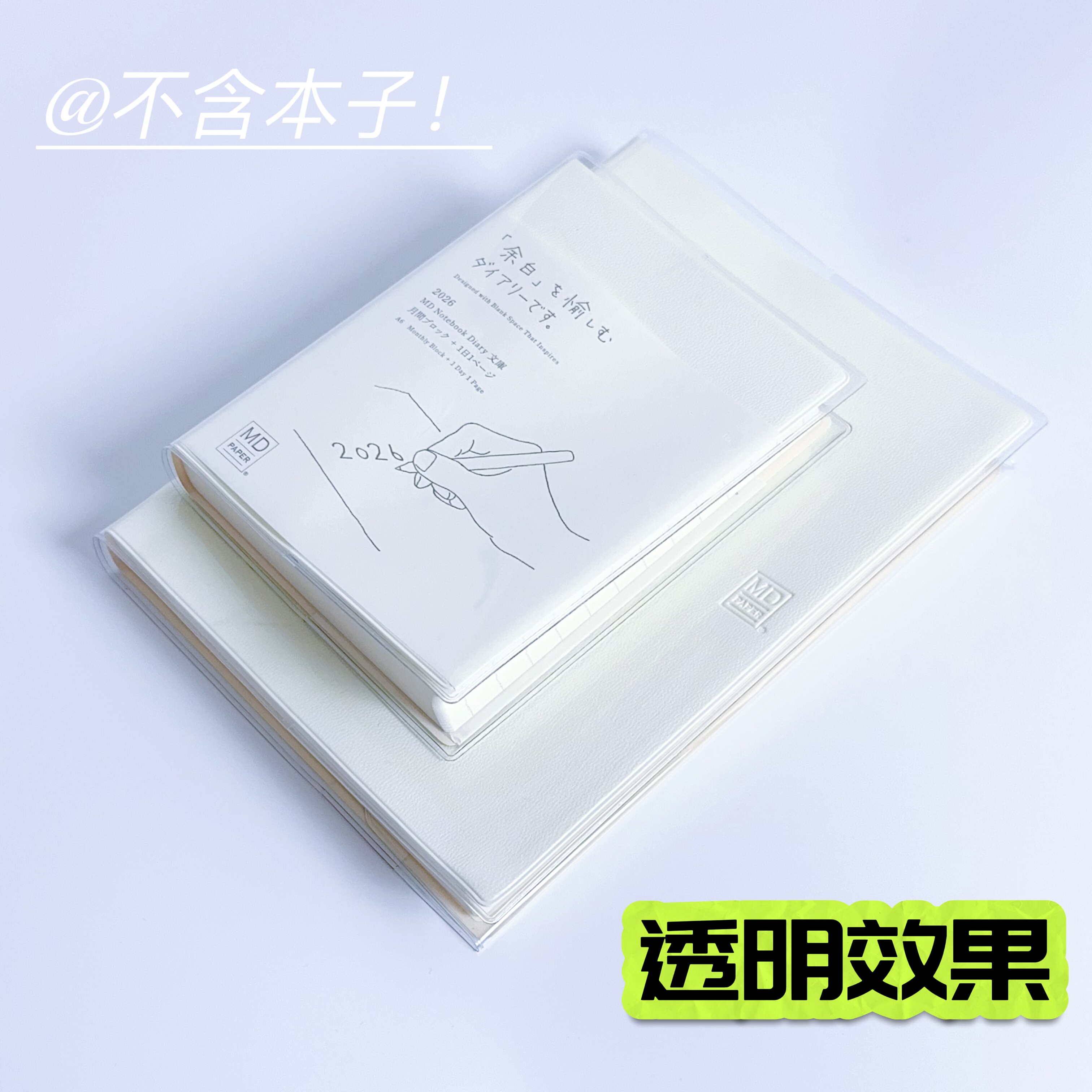 2026余白一日一页A5透明书皮手帐本保护套A6小奶砖磨砂pvc书衣MD