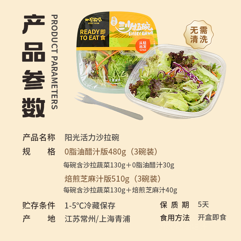 一号农场开盒即食阳光活力沙拉碗6种新鲜蔬菜免洗免切轻食代餐