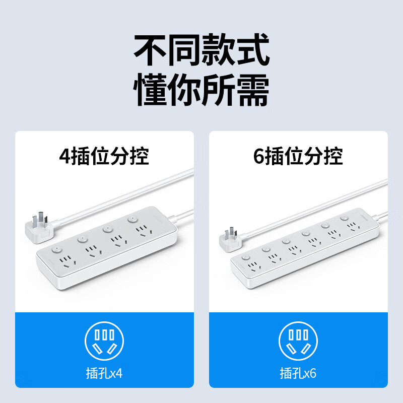 绿联插排六位分控独立开关电源插座排插电脑接线板插线板拖线板