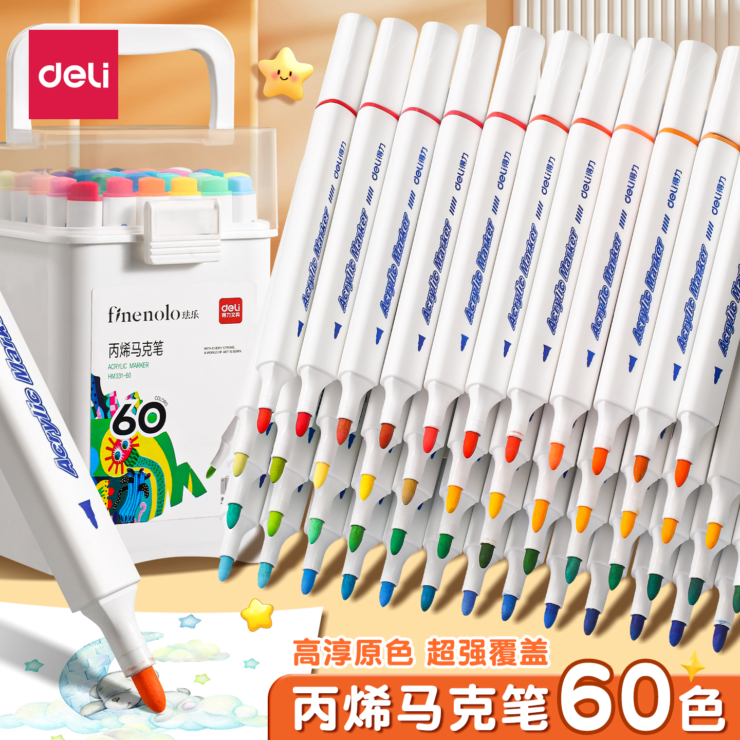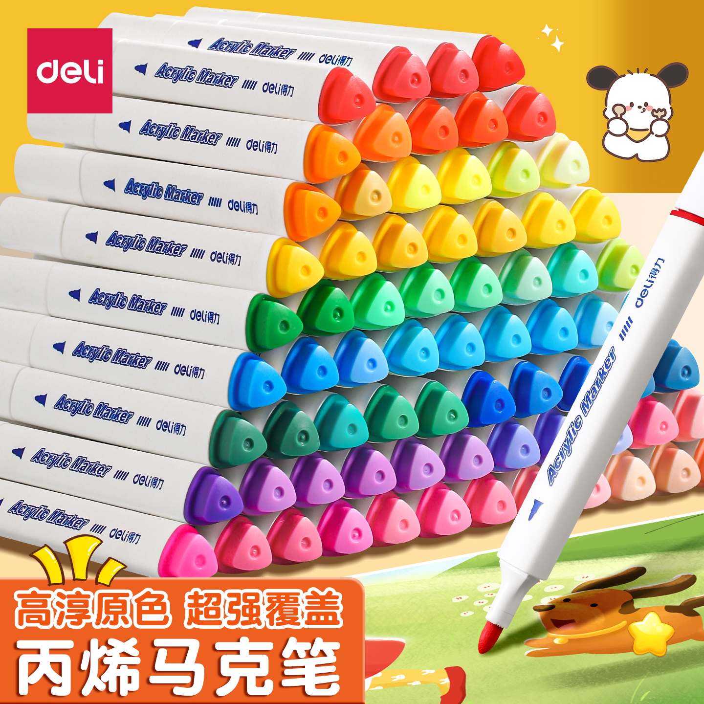 得力丙烯马克笔小学生幼儿园美术专用不透色儿童小学生彩笔丙烯笔可叠色可水洗绘画拍立得防水涂鸦DIY水彩笔