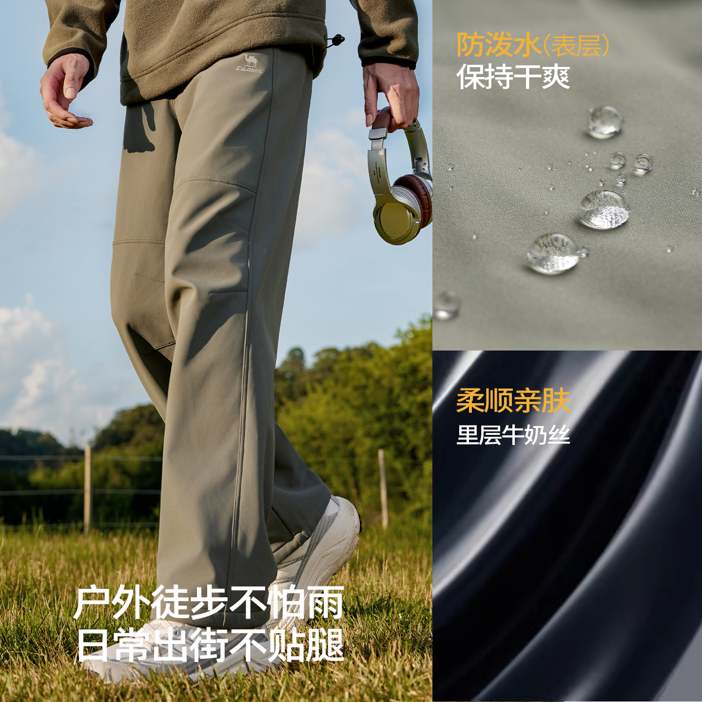 骆驼运动裤男加绒户外伞兵裤防水防风吸湿冲锋裤登山软壳裤工装裤