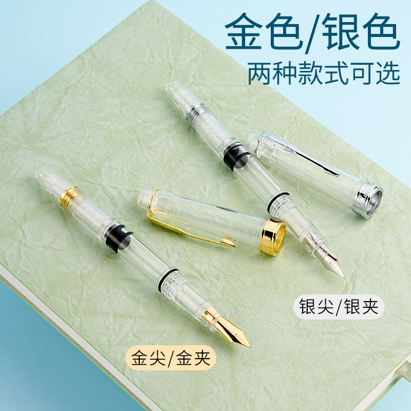 大容量透明钢笔老师专用红色钢笔美工尖打钩教师专用批改作业学生书写练字EF尖0.38特细吸墨水不可擦红色墨水
