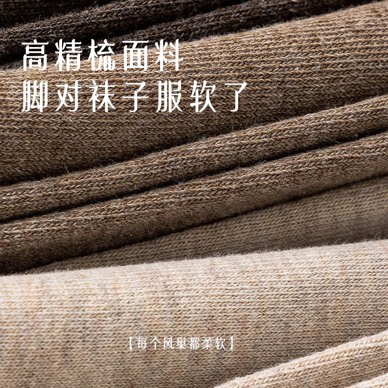 5双装 往往精梳棉质3A抗菌女士袜子中长筒袜纯色休闲男袜秋冬季